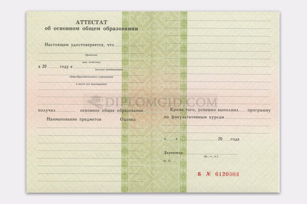 Аттестат об окончании 9 классов 1994-2006 года